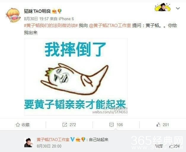 其实,咕咕在翻看微博的时候,发现黄子韬的脑回路和别的偶像不太一样,说话真的一点都不客气的,粉丝撒娇,黄子韬直接回应自己站起来
