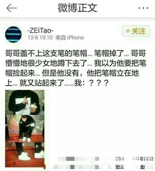 毕竟脑回路有点和常人确实不太一样的地方,例如某场发布会,有粉丝看到黄子韬的笔套掉在了地上,结果,黄子韬没有把笔套捡起来而是把笔套竖好放在地上
