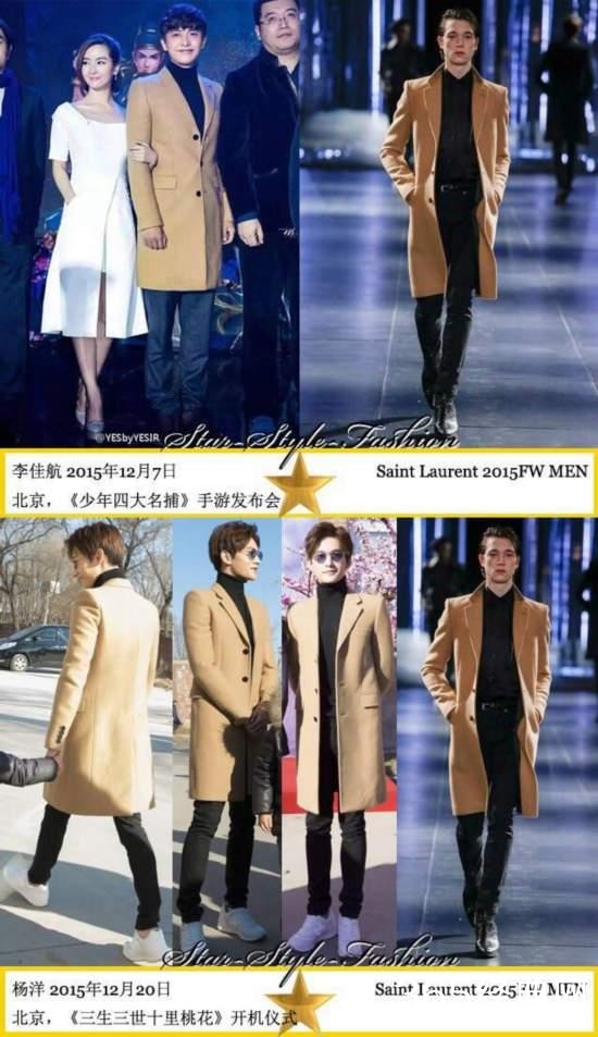这件衣服不太好驾驭,幸亏两人都皮肤白且气质正。吴亦凡穿出了略俏皮的潮人欧美风,杨洋穿出了轻熟男韩风。