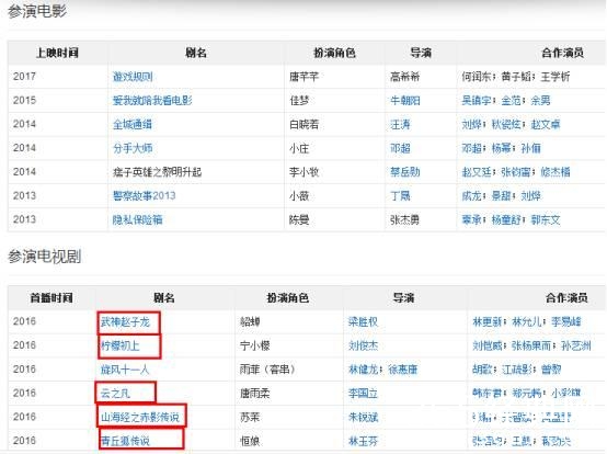 胡冰卿出演作品:大大小小12部。