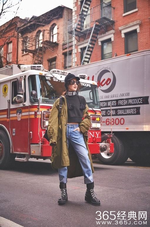 看到如此勤奋的范爷,婷婷想起几天前在网上看到冰冰在纽约街头露出水蛇腰的造型,照片中的冰冰穿着一件高领的短版上衣,下身则搭配GUCCI刺绣牛仔裤,这个性化的风格简直潮到出水啊,头顶上那顶毛球辫饰棒球帽,非常俏皮可爱。外面再搭一件军装风衣外套,简直型爆了!