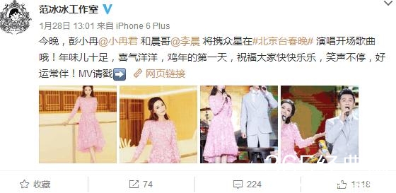 范冰冰还推荐自家艺人与男友李晨一起登台献唱北京卫视春晚,让男友带艺人出镜,也是一个好方法,看来这老板确实当的称职