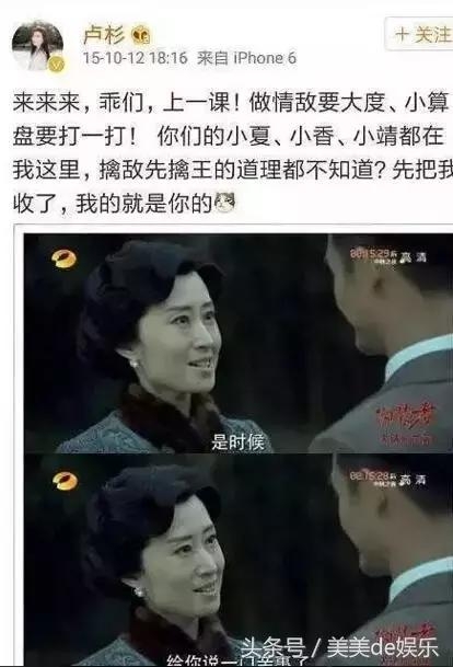 事实上,总有人拿卢杉和其他三朵金花相比较,但其实娱乐圈也有很多这种明明是同一个班的同学,但是出道后知名度和人气都相差很大的例子,比如杨幂和袁姗姗,不过人家袁姗姗后来还是成了励志女神成功“洗白”了自己。