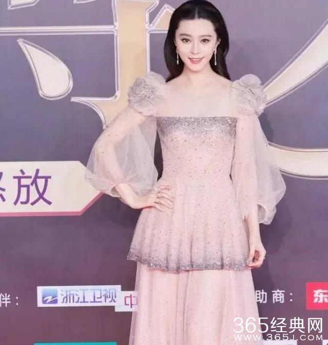 冰冰穿上温柔浪漫的蜜桃粉薄纱裙装,搭配蜜桃粉色系的妆容,淡淡的同色系腮红和唇色,我们的的范冰冰女神看起来好美。