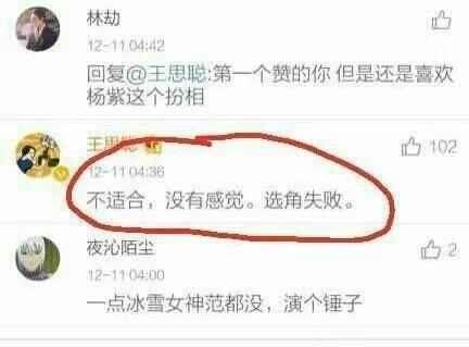 最近王思聪与杨紫杠上了,起源是《青云志》的原著作者萧鼎曾表示支持杨紫演陆雪琪,而王思聪却不这么认为,觉得陆雪琪选角失败,吐槽“杨紫不适合,没有感觉,选角失败”。