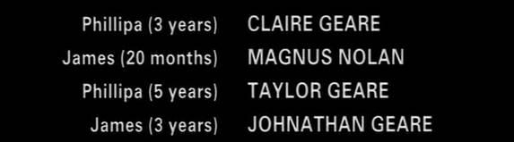 当然,最重要的一点就是,在最后的演员表里,Dom两个孩子的扮演者,是分别四个人,而且清楚的标记了这其中年纪上的区别。