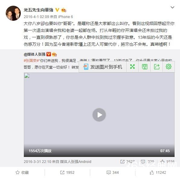 去年4/1向华强就曾发微博说到,虽然他比张国荣大八岁,却也要喊他哥哥。可见才华横溢颜值爆棚的张国荣不仅仅只是他粉丝们心中的哥哥,尊重前辈提携后辈、热爱工作热心生活、对家人关爱为朋友义无反顾的他,更是整个香港乃至整个华语乐坛影坛,人人都乐意愿意称呼的哥哥。