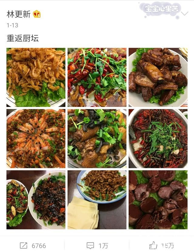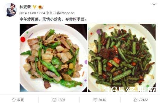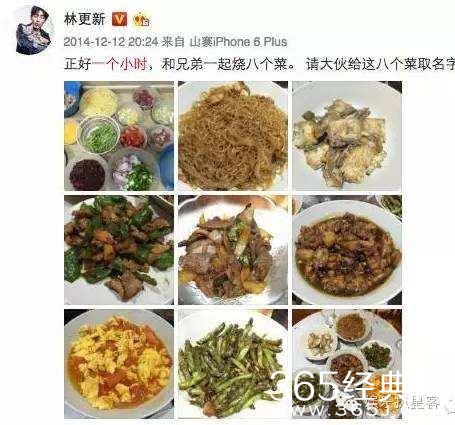 经常在微博晒自己做的一桌子的菜,而且看起来真的很不错诶。真的没想到林更新私下里还有这个爱好~果然颜值高的男人厨艺也不会太差哈哈哈~