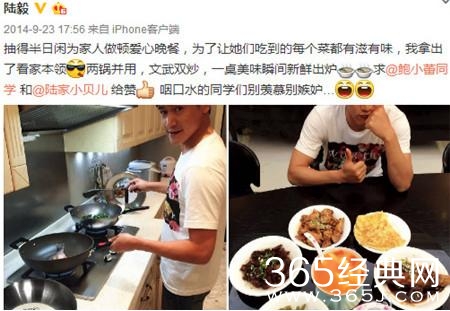 然后呢,就是陆毅啦。真的也是个好老公哇,偷得半日闲为女儿、老婆洗手做羹汤