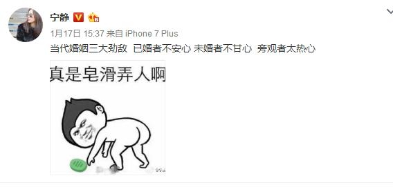 宁静的性格在娱乐圈是出了名的豪爽,微博也是经常发一些有意思的段子和鸡汤,从一些配图来看,完全是个“高手”啊~