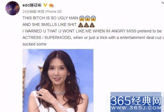 早前陈冠希在微博炮轰林志玲。言语激烈,甚至用了婊子一词