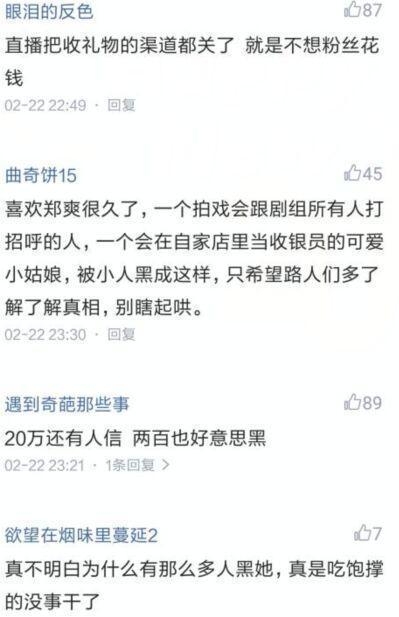 一个直播封闭送礼品通道的郑爽会要粉丝200块钱?用脚丫子想也知道答案。一个为自家炸鸡店的员工放四十五天春节假的郑爽你们还忍心黑?一个鼻子植入假体能大方说出来的密斯你不以为可爱?没有伤害他人的真实又什么错呢?喜好真实的郑爽!