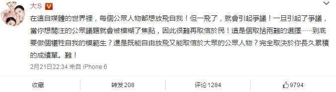 到底要做捐躯自我的榜样生照旧既能自由放飞又能取信于大众的民众人物,完全取决于你恒久累积的结果单。难!大S说的有原理。但小编以为真实永久比卖弄要好。有些民众人物内外纷歧有多好的结果也不值得喜好。