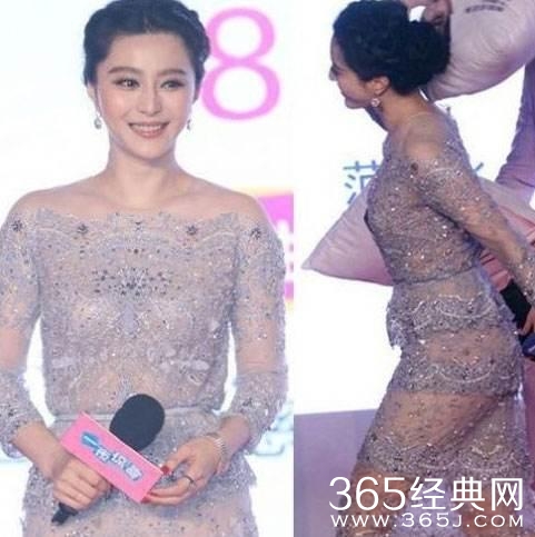 范冰冰这套蓝色透视装也让人十分尴尬,麒麟臂、大象腿、水桶腰一应俱全。