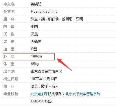 在资料可以看到,黄晓明公开的官方身高是1米80,网上也能看到很多的质疑,只是没办法证实!