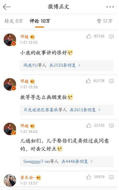 娱乐圈里有非常多的明星都玩微博,隔三差五的就发个动态什么的,或者给自己的粉丝们发点福利啥的。但是也有这么一个明星,每天在微博上抢自己的热门,抢粉丝沙发,在别人的微博里异常的活跃,绝对是微博大V里的一股泥石流啊!难怪被别人称他活跃的像个“高仿号”......他就是,邓超。