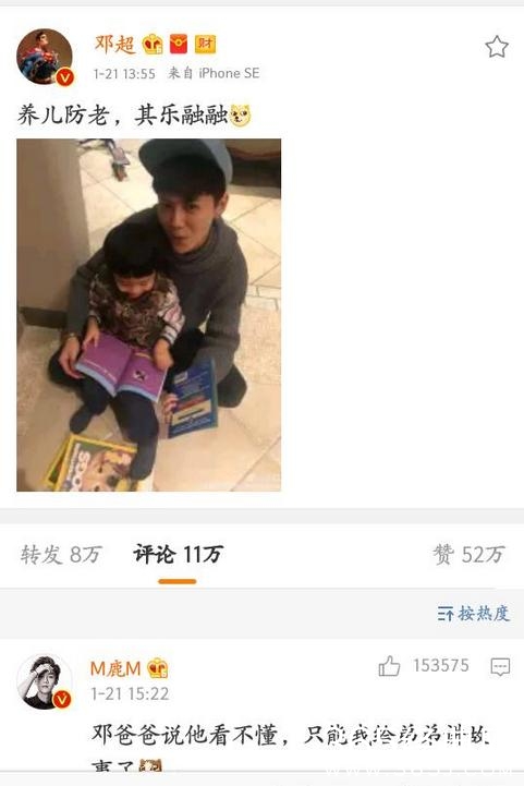 这次历来喊邓超为“超爸爸”的鹿晗来看望他,邓超就发了一篇微博,是傻狍子和等等在一起玩的照片,还配上文字说“养儿防老,其乐融融”