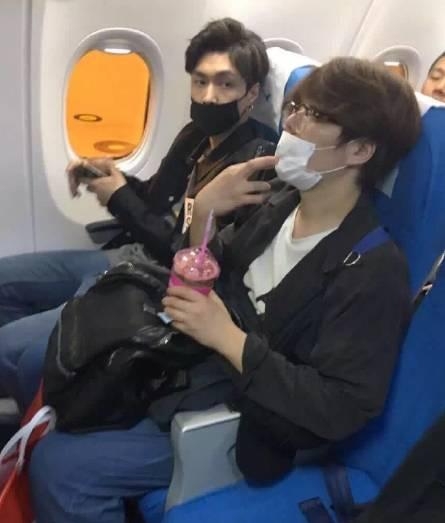 坐飞机遇见来合影一张