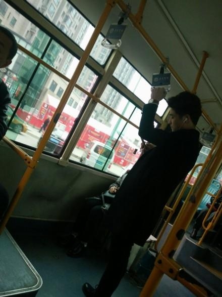 这个公交车上的小哥,大家说他长的很像主持人李晨↓