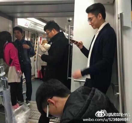 比如这个就被称为是“地铁霍建华”,你别说这个侧脸还真有点像↓