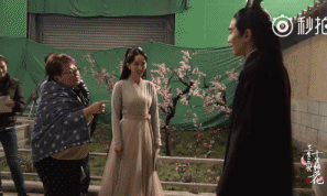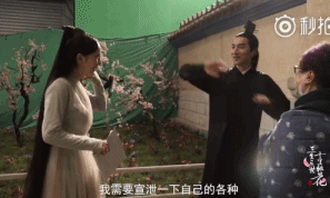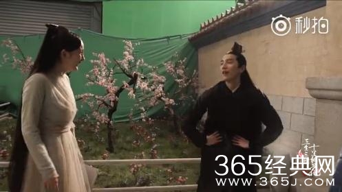 剧组放出一段杨幂和赵又廷现场对戏的花絮,对着对着,旁边工作人员提醒赵又廷,咦,你的沙鬓开了!