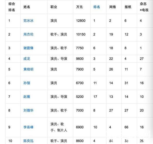 依据表中数据和全球最高明星收入的状况看,范冰冰实属第一。对此,网友们应该没有争议。