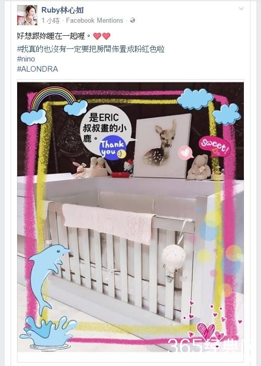 艺人林心如和霍建华结婚后,农历春节前迎接爱女「小天使」,为保护孩子隐私,至今只露出超萌小脚丫。而她喜迎女儿诞生,23日上传一张婴儿床照片,还俏皮留言「好想跟妳睡在一起哦!」