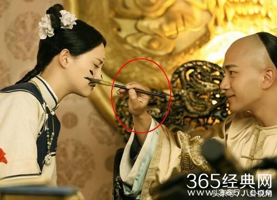看看他在该剧中的剧照,也可以发现他的手并不是那么纤长。握着毛笔的手看起来只有那么一点点。