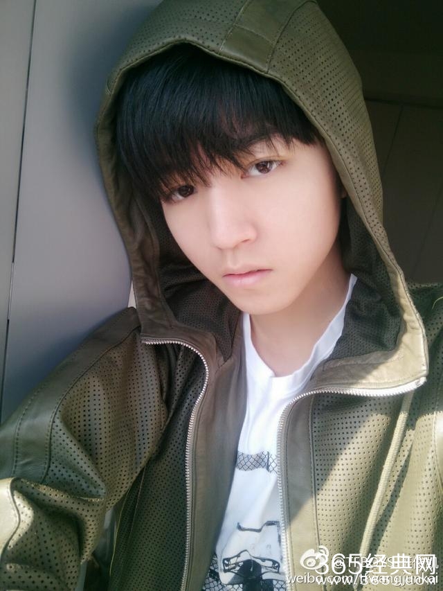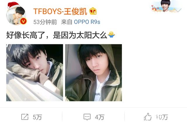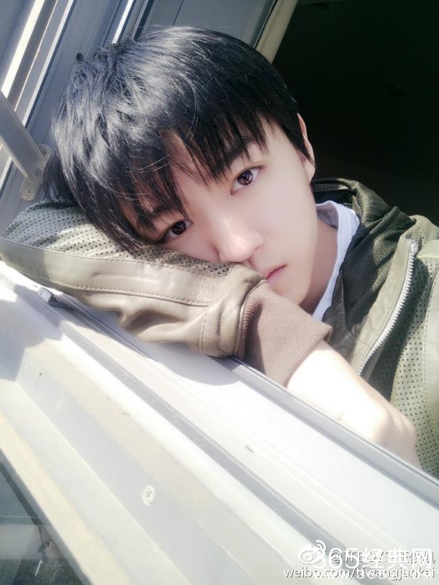 难得因为天气好,王俊凯更新了微博,还晒出了两张自拍照描写春天的句子
