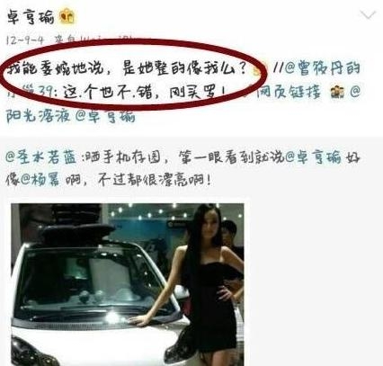 近日杨幂的一日替身卓亨瑜被网友发现吐槽说自己才不想像一个整过容的女人,走上了明星脸的风口浪尖。