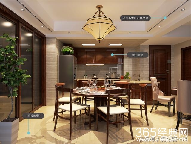 餐厅:温暖的色调温馨而柔软,线条简洁的家具大气明朗,