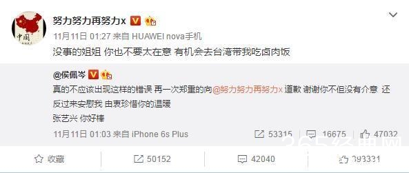不过侯佩岑后来在微博上也道歉,张艺兴也转发原谅了,两位都是很懂礼貌的人啊,据说后来张艺兴去台湾的时候,侯佩岑还真请他吃了卤肉饭,两人还意外的成为了朋友哈哈哈