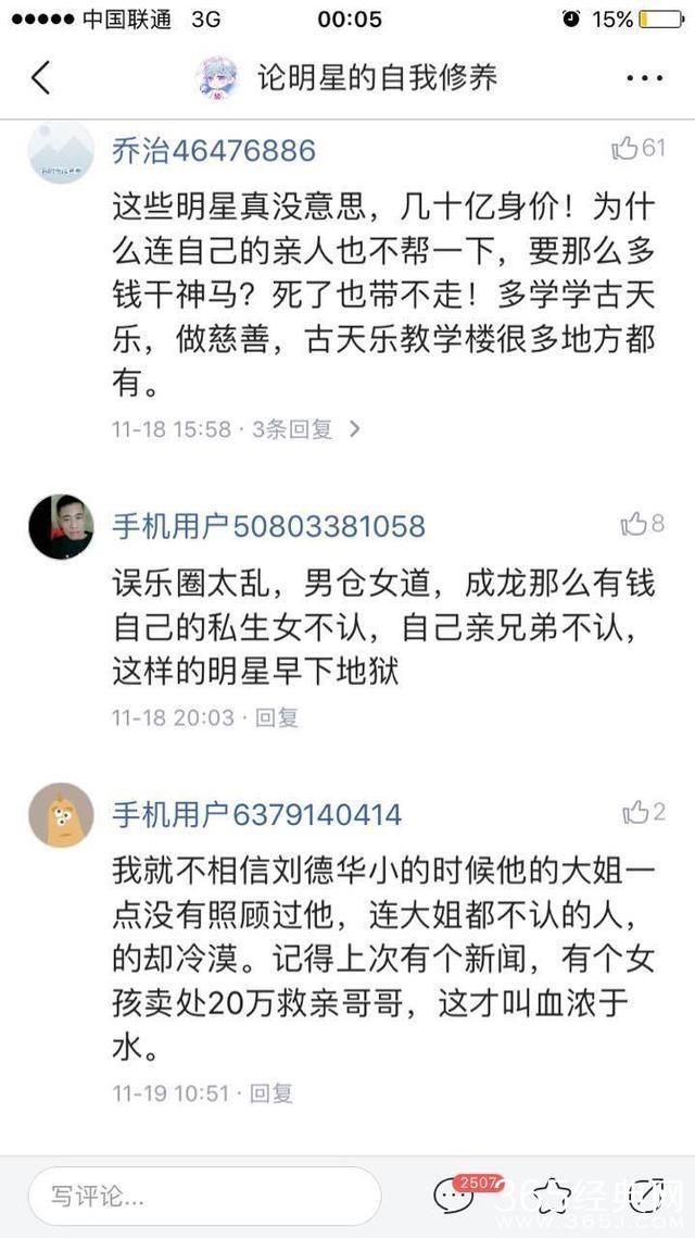 看到这些照片,有的网友说刘德华这么有钱,居然都不帮一下自己的姐姐,这让人十分失望。还有的网友说,刘德华的姐姐在他小的时候肯定照顾过他,可刘德华现在却无视姐姐的悲惨境况,这未免有些忘恩负义。