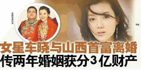 然而,他们2011年1月份结婚,2012年4月份离婚,这场豪门婚姻只持续一年零三个月。曾传,车晓当时离婚时,向男方索取3亿分手费,但是车晓随后在微博回应,“对方的家产是人家辛辛苦苦打下的江山我不要!”,这门豪门婚姻就这样结束。