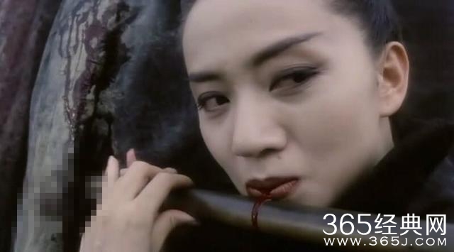 林青霞这一身红衣啼血,再加上眼角的泪水。不愧是教主啊!妩媚又霸气,但嘴角一抹红又让人觉得心疼~