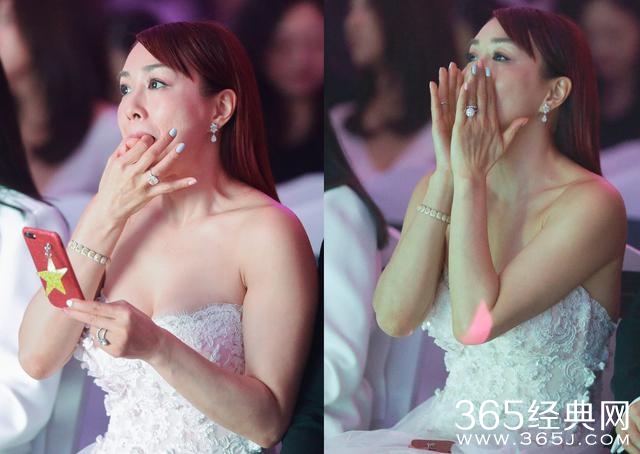 从现场照片看,钟丽缇也是紧挨张伦所而坐,期间一直手机不离手,偶尔还把手指放在嘴里向台上吹口哨,看起来相当豪放,一旁的张伦硕也是有些尴尬。