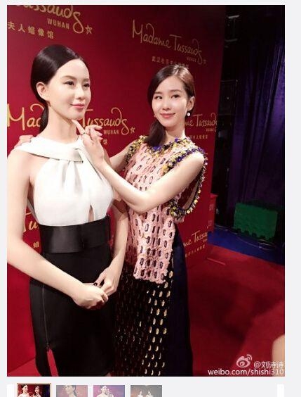 刘诗诗的蜡像真的好美啊!把她本人恬静大方的气质完全复刻表现了出来,看得出来刘诗诗本人对自己的蜡像也很是满意,调皮的合影勾下巴