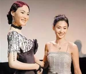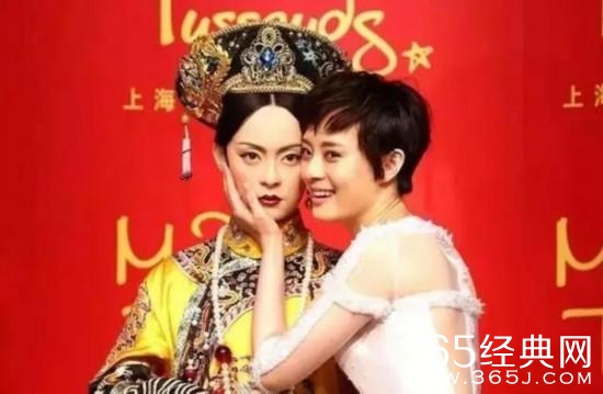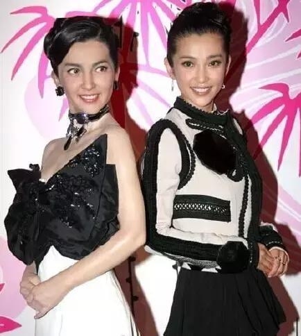 笑得有一丝尴尬一丝无奈的张柏芝,和她瞪死人不偿命的蜡像