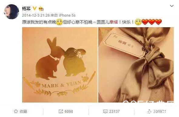 高圆圆和赵又廷大婚,杨幂也没有亲去现场祝贺,也只是在微博送祝福,语气显得很亲密。