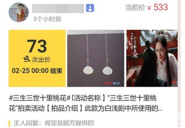 另外,杨幂饰演「素素」时所穿的麻料洋装,同样掀起热卖,竞标价一度冲到人民币5000元,就连在剧中配戴的耳环跟发簪,都分别被开价到人民币533元、人民币903元,影响力令人叹为观止。