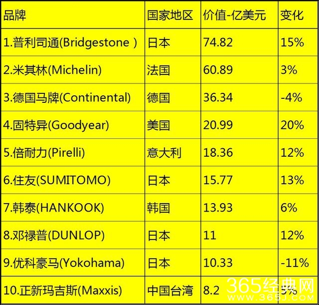 不过非常值得一提的是来自正新玛吉斯的品牌是唯一进入前10的中国轮胎企业,来自中国台湾。前10的排名当中,日本的企业多达4家,而中国的大陆的轮胎企业没有列入。从这个层面上来衡量,中国的本地企业真的品牌之路可能还有很长的路要走。期待在不远的未来能有更多的中国轮胎企业品牌位列其中。