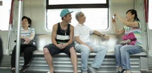 地铁中的陈冠希大方与粉丝合影,阿姨笑的好欢啊。