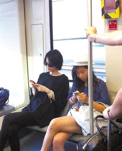 在北京地铁1号线中被拍到的汤唯。据说,当时她赶时间参加周迅监制的电影首映,无奈交通拥堵,故选择地铁出行。