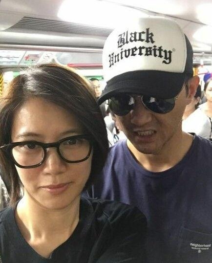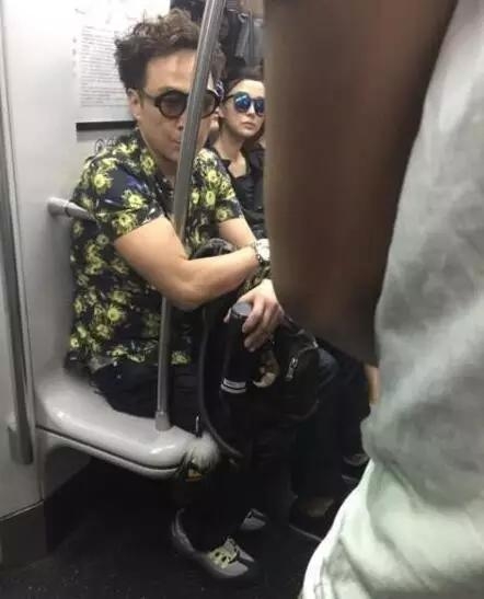 张智霖和袁咏仪夫妻,两人在拥挤的地铁中自拍,很恩爱惬意啊。。