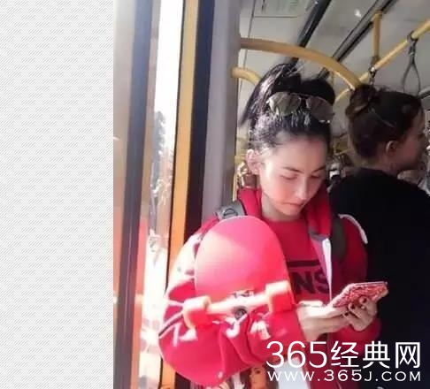 身穿红色运动装,头发高高束起的张柏芝。怀中抱着红色的滑板,阳光透过车窗洒在她精致的脸庞上,真的还是很美啊。