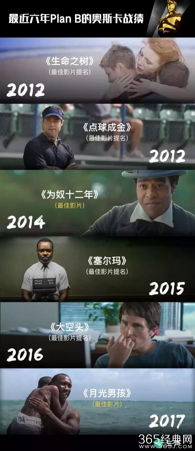 过去6年,一共有6部PlanB投资或制作的影片入围的奥斯卡最佳影片,从2013年开始已经连续四次入围,其中《为奴十二年》和《月光男孩》都笑到了最后。