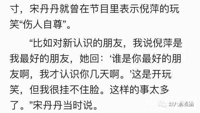 腾讯娱乐的这篇文章中说了几个关于倪萍的段子,包括宋丹丹说倪萍的玩笑没分寸,伤自尊。按现在流行的说法,倪萍情商不高,但她在刀子嘴下是一颗善良的心。