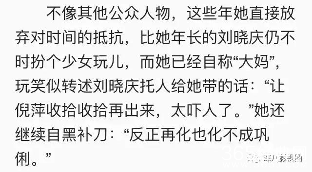 而比倪萍年纪大仍不放弃“少女”形象的刘晓庆,托人给她带话说:让倪萍收拾收拾再出来,太吓人了。