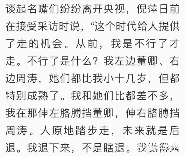 因此,如今的一姐虽然也到了倪萍当年离开央视的年纪,却比她那个时代多了许多可能。
