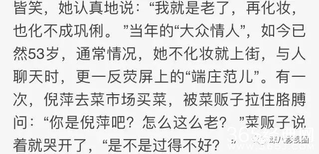 这年头女星们都在千方百计扮嫩,倪萍却不掩饰自己的老态。她说去买菜被菜贩子认出来:“你是倪萍吧?怎么这么老?”菜贩子说着说着哭起来了:“是不是过得不好?”